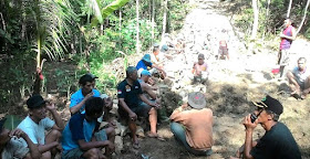 Kasihumas Polsek Pajangan Aiptu Sunarto membaur bersama warga masyarakat gotong royong membangun jalan Dusun Blabak Triwidadi Pajangan Bantul, Minggu (5/3/2017) jam 07.00 Wib.